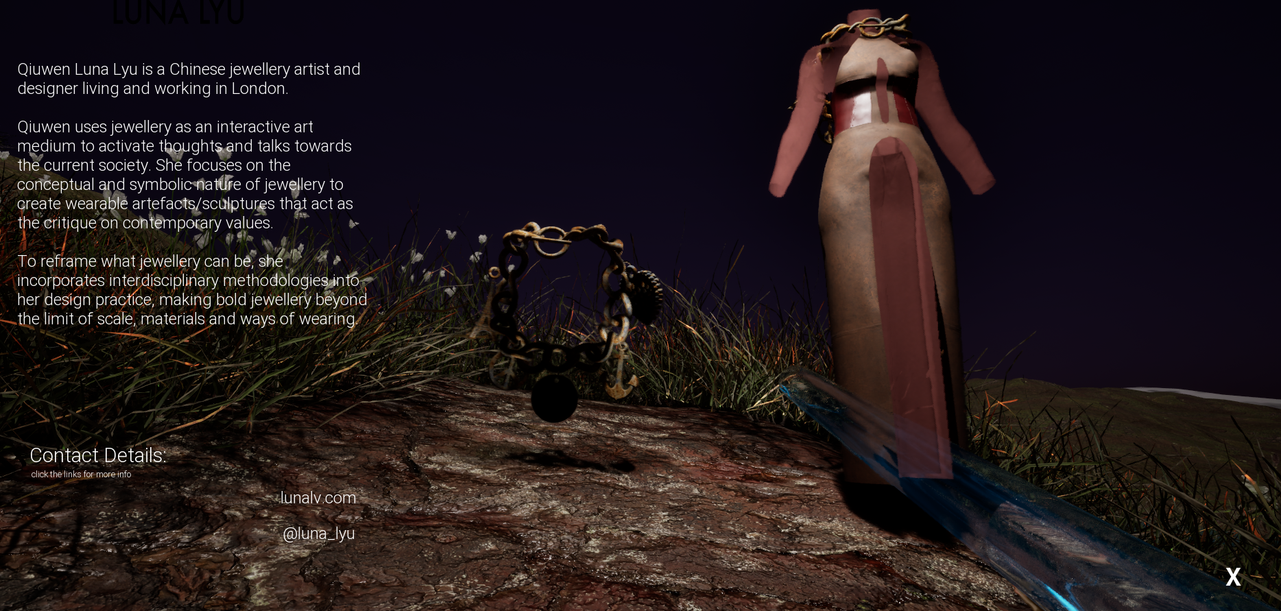 Second Coming is an immersive experiential project created in Unreal Engine, inspired by the Latin concept representing mankind’s spiritual source. The project reimagines the way we interact with jewellery and fashion, offering a deeper connection between designers, their creations, and the raw materials used. It immerses visitors in the conceptual world of inspiration, allowing them to explore the stories, cultures, and materials behind each piece, while emphasising the link between nature, culture, and craftsmanship. The experience challenges traditional retail by moving away from endless product pages, instead providing an engaging platform where visitors can inspect designs up close, learn about the creators, and understand the inspiration and ethics behind their work.